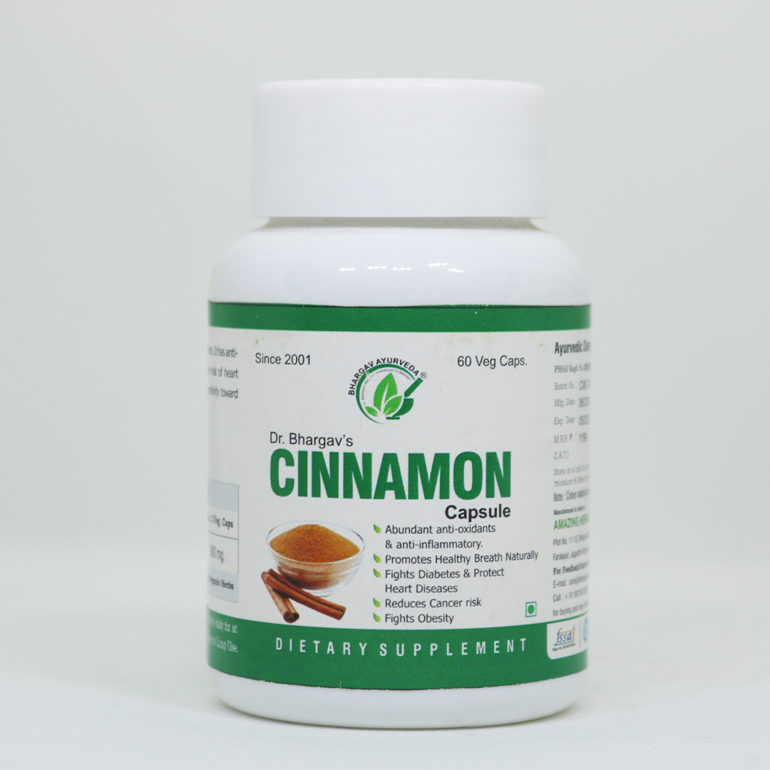 Dr. Bhargav’s Cinnamon Capsule is abundant in antioxidants and anti-inflammatory compounds. This powerful supplement is designed to combat diabetes and protect against heart diseases by improving sensitivity to the insulin hormone. /n