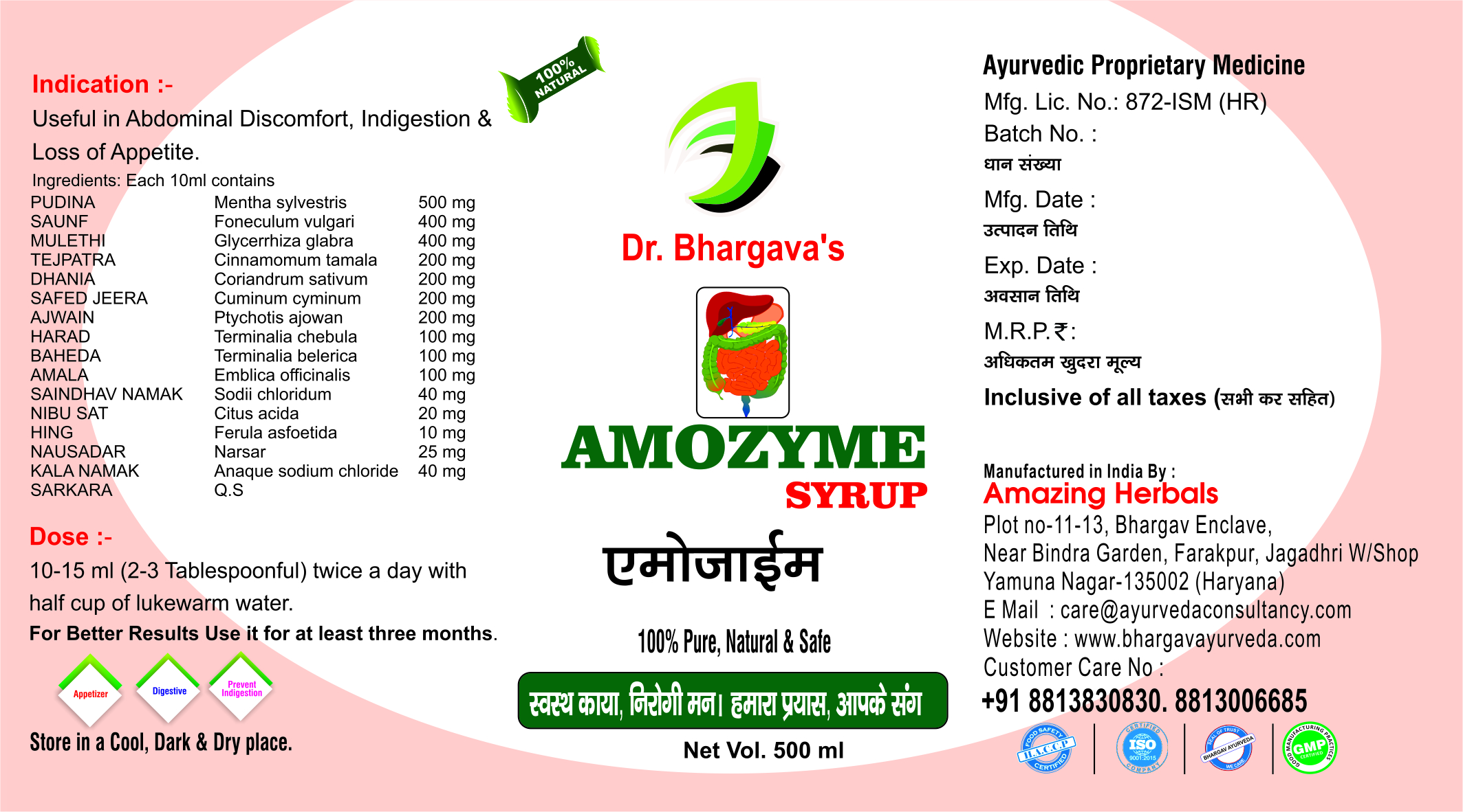 Dr. Bhargav’s Amozyme Syrup is a highly effective digestive tonic that provides excellent results for various digestive problems. This unique formulation is designed to address issues such as gas discomfort, loss of appetite, indigestion, bloating, distended abdomen, and anorexia. /n/n