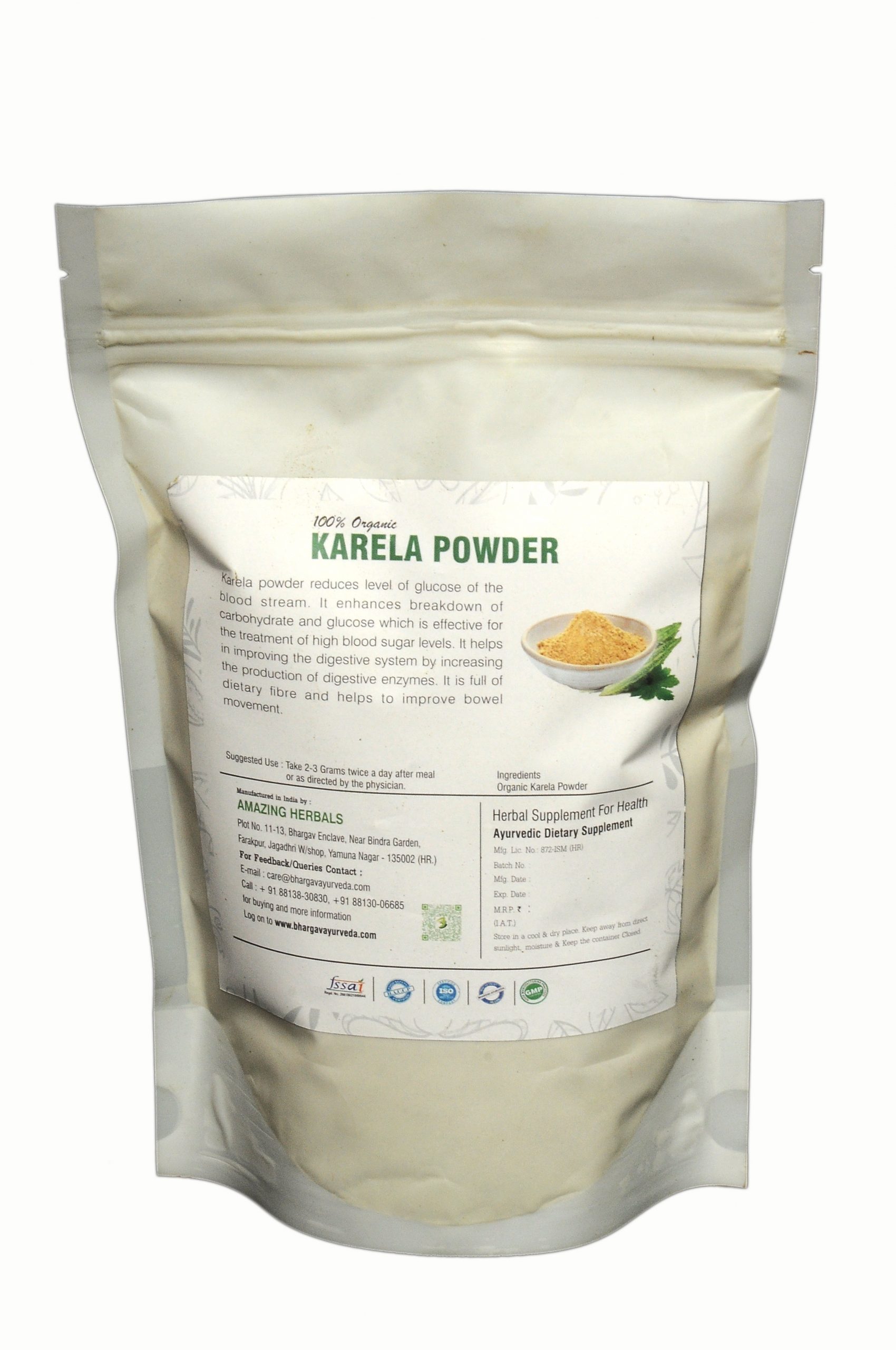 Dr. Bhargav’s Karela Powder is a natural formulation designed to help maintain blood sugar levels effectively. It aids in reducing glucose levels in the bloodstream and enhances the breakdown of carbohydrates, making it beneficial for managing high blood sugar levels. Additionally, this powder supports digestive health by increasing the production of digestive enzymes, and its high dietary fiber content promotes improved bowel movement. With its antioxidant, anti-inflammatory, and hepato-protective properties, Karela Powder also helps boost immunity and may assist in the management of kidney stones, making it a holistic choice for overall well-being. /n/n